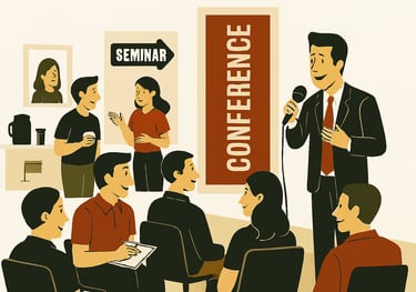 Producción integral de eventos estratégicos: seminarios, capacitaciones, convenciones anuales, encuentros sectoriales. Curaduría de contenidos, logística y posicionamiento de marca.